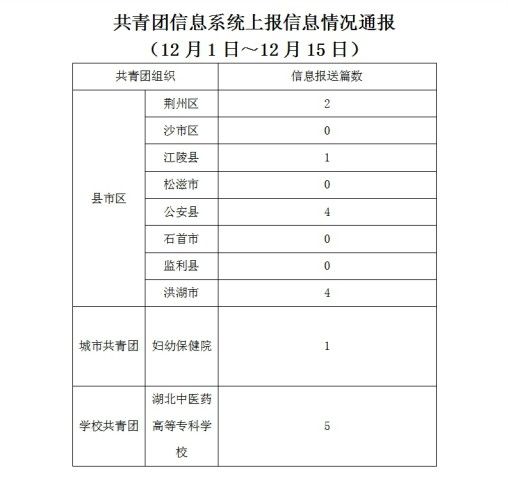 共青团信息系统上报信息情况通报 (12月1日~12月15日)